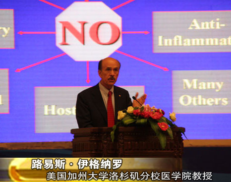 “他揭开了困扰科学界百年之久的硝酸甘油作用机理之谜,他发现了一氧化氮在心脑血管系统中的信使作用,这一成果是科学家第一次发现,气体分子可在生物体内发挥传播信号的作用,从而开辟了一个医学研究的新领域。”这是电视台对这位演讲者的介绍,他就是美国加州大学洛杉矶分校药理学教授、医学院院长,1998年诺贝尔医学奖获得者——路易斯·伊格纳罗教授。